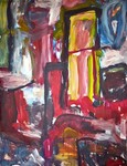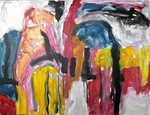 Grote abstract-expressionistische doeken, die ik samen met mijn collega Fons Heijnsbroek met acryl op kunstlinnen maak. Dialogen in verf.