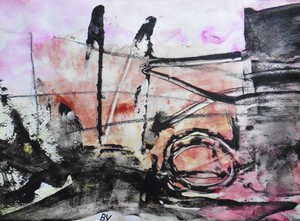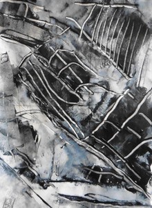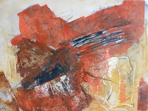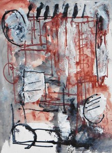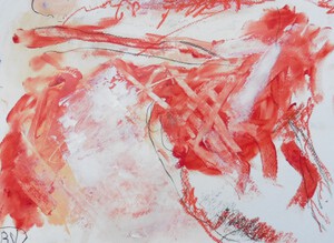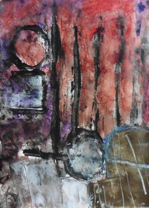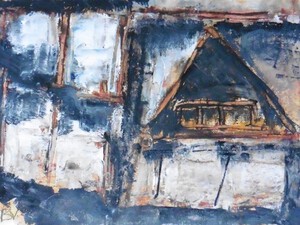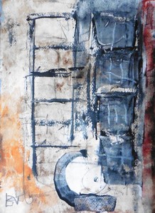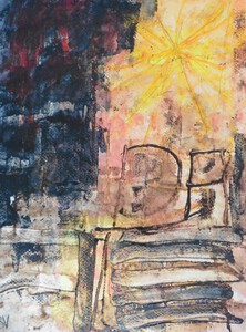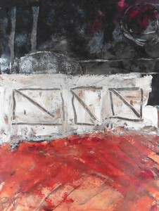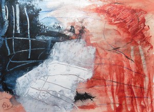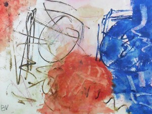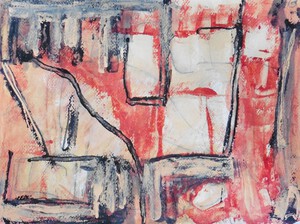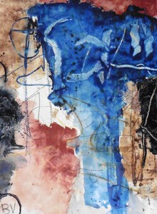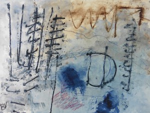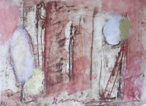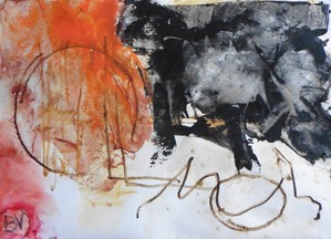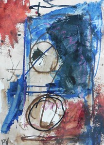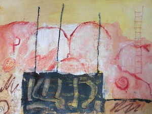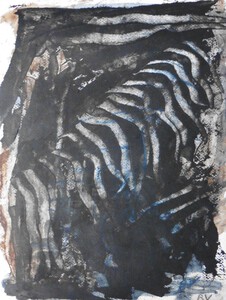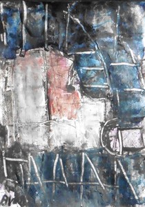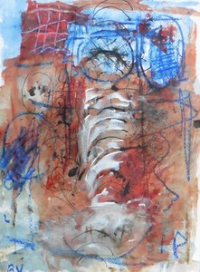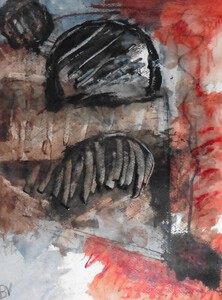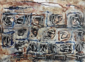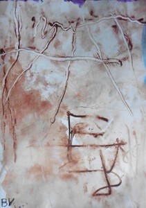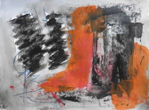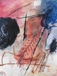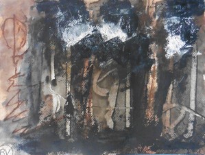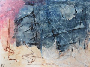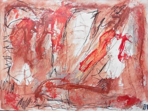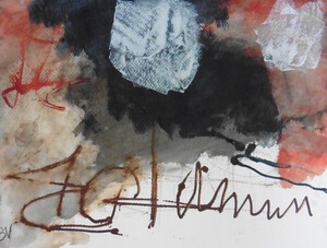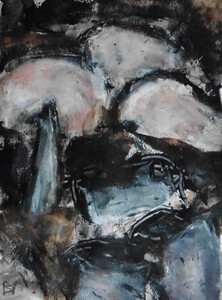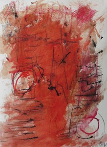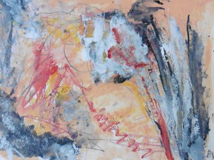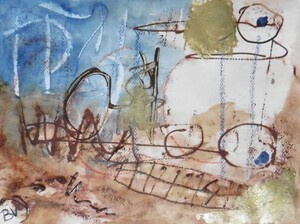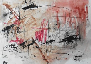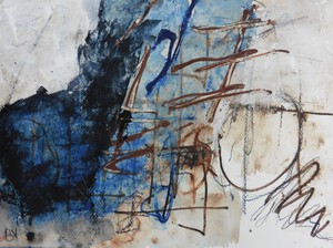 Klein werk( 30 x 40 of kleiner) op papier in gemengde techniek met name krijt en conte met acryl