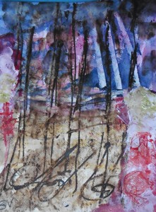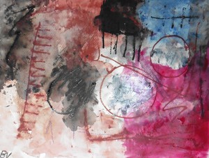 Klein werk op papier in gemengde techniek