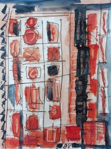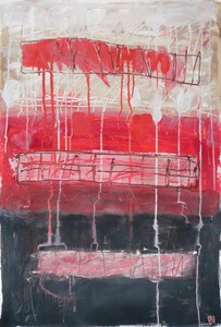 Recent abstract-expressionistisch werk met acrylverf op papier